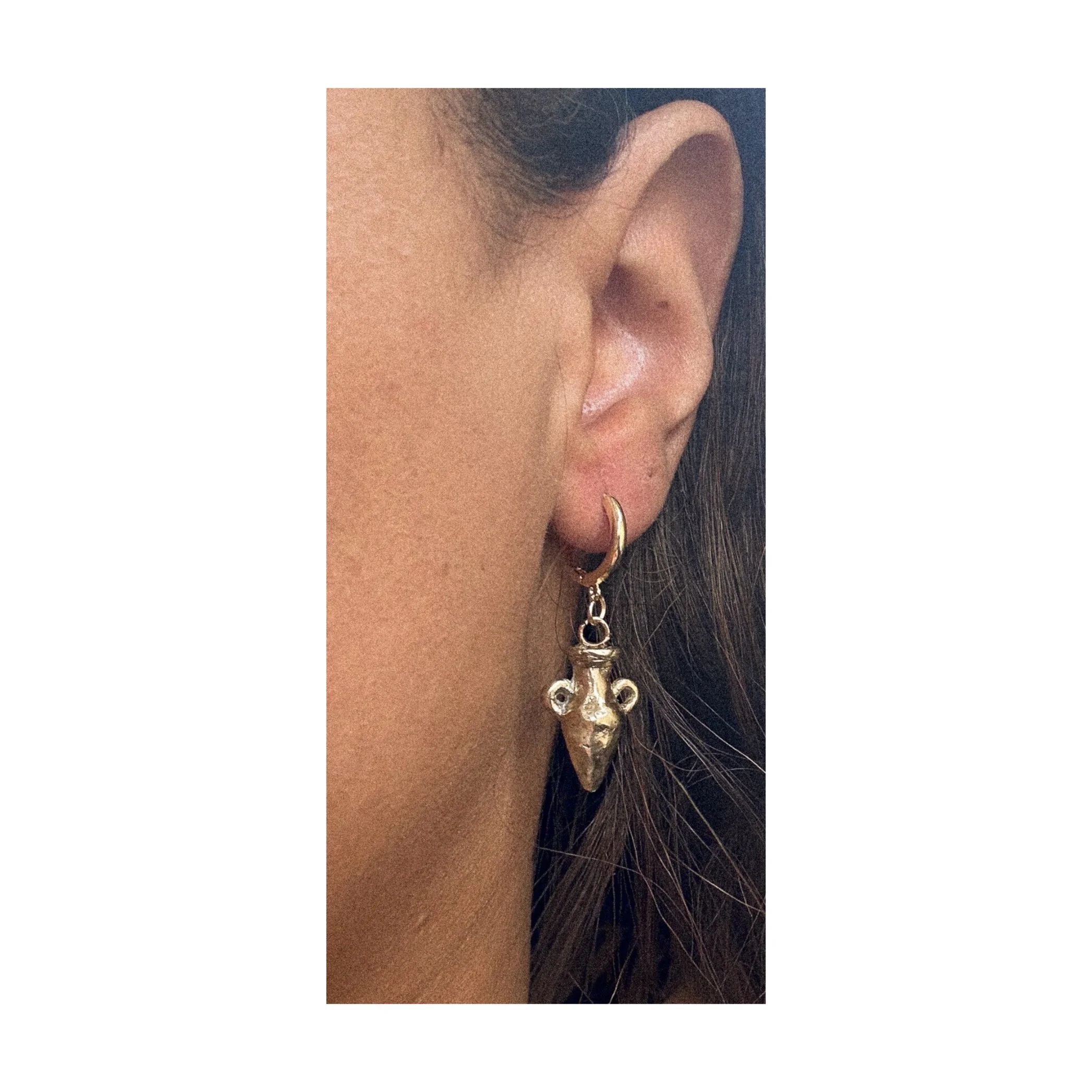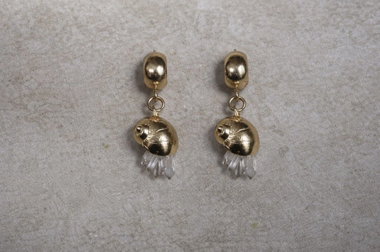 a pair of creatures hang from a pair of lobe hoops