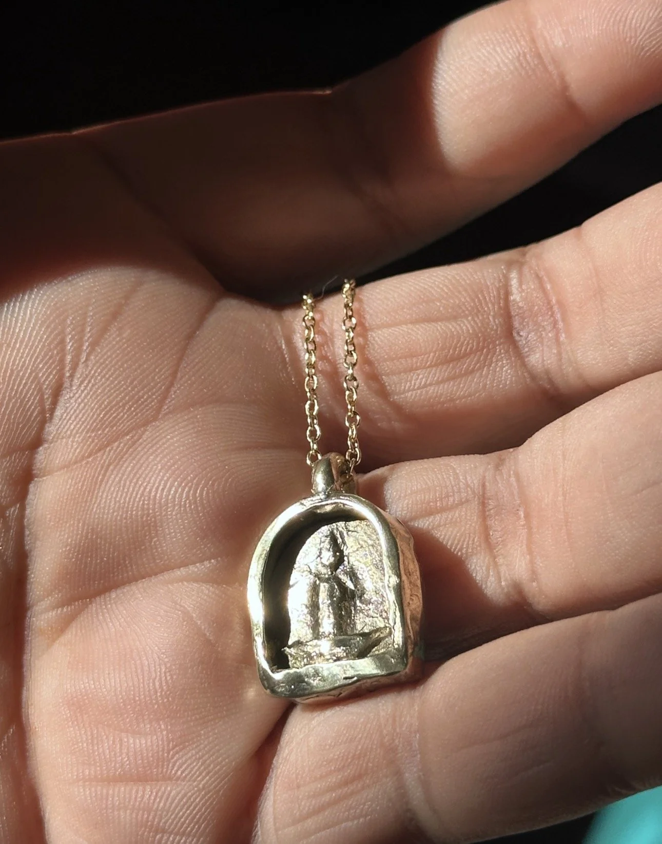Inspired by memento mori traditions, this piece represents a light carried for those who have passed — a quiet act of remembrance held close to the body. Its form is minimal and sculptural, allowing the symbolism to remain intimate rather than overt.